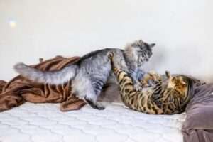 また、日中にねことたっぷり遊び、しっかりと疲れさせておくことで、夜中に走り回る「ねこの運動会」を抑えることができるかもしれません。
