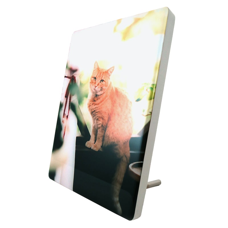 クリスタルフォトパネルで印刷していただけるところを探していて、こちらのサイトに辿り着きました。ネコちゃんの写真以外も可能と記載があり家族や子供の写真を注文しました。 プレビュー時は画質がガサガサで心配しましたが、手元には綺麗な画質の物が届きとても満足しております! 自分で任意の文字やステッカーなどデコれるのも◎! また利用させていただきます。