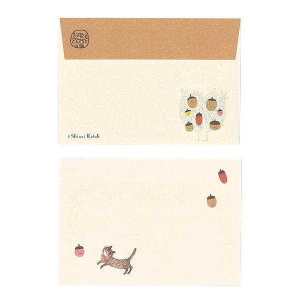 雑貨デザイナー・絵本作家のShinzi Katoh(R)が、宮沢賢治作の「どんぐりと山猫」をデザインしたレターセットです。