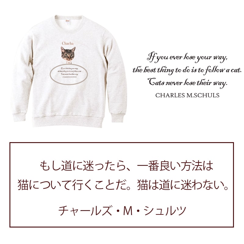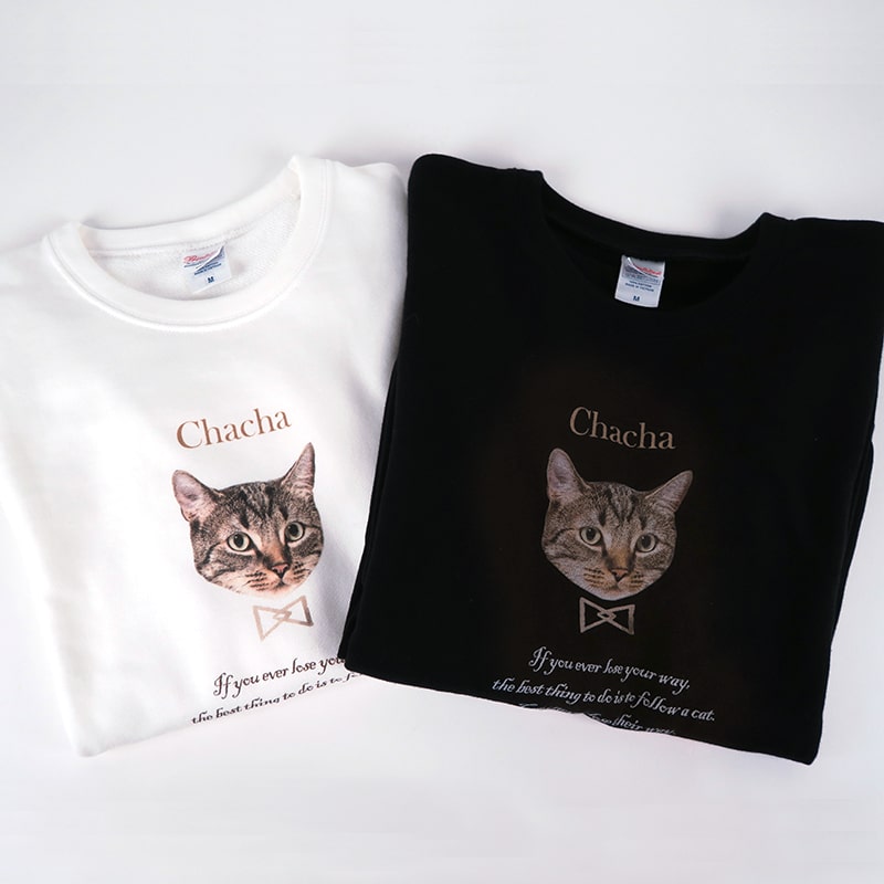 愛猫のお顔とお名前が入るオーダーメイドのトレーナーです。アップロードしたお写真を1枚づつ切り抜き加工します。