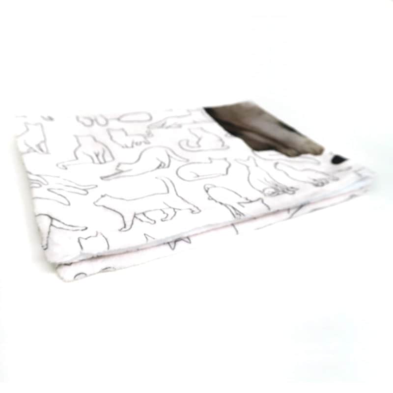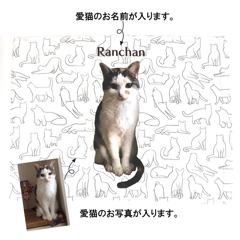愛猫の写真とお名前が入るオーダーメイドのブランケットです。一枚ずつお写真を切り抜いて加工します。