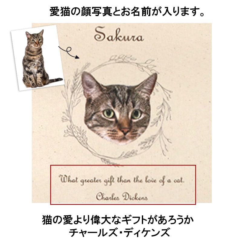 愛猫の顔写真とお名前が入るオーダーメイドのトートバッグです。一枚ずつお写真を切り抜いて加工します。
