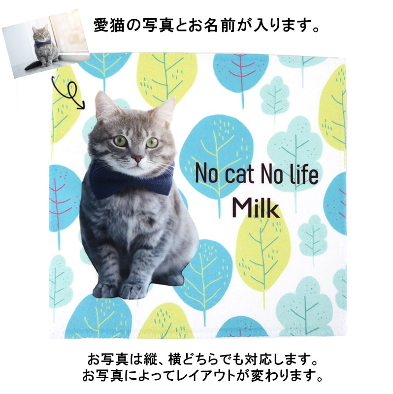 愛猫の写真とお名前が入るオーダーメイドのタオルハンカチです。