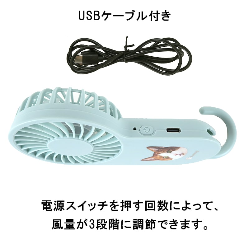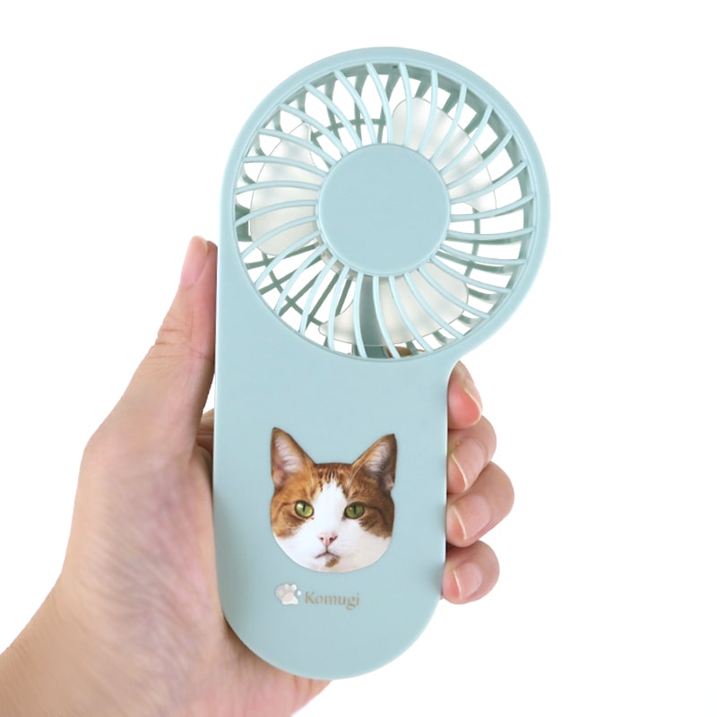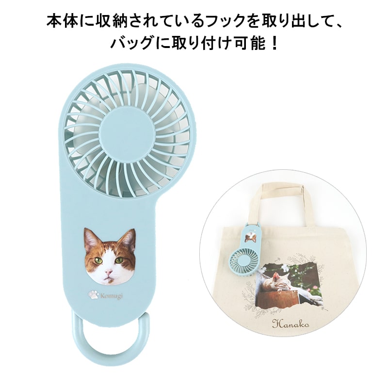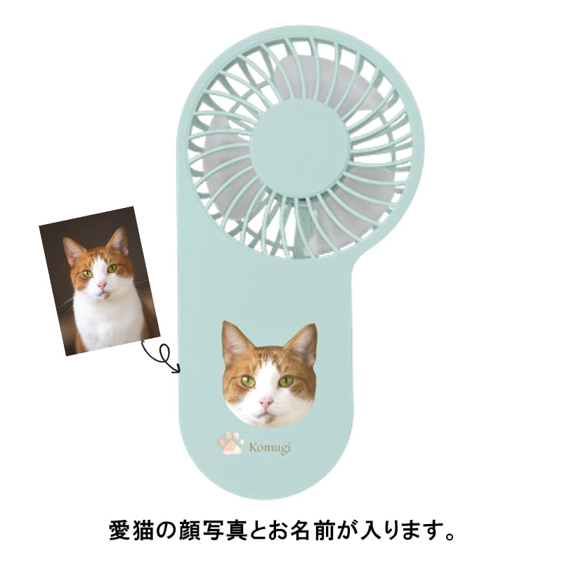 愛猫の写真とお名前が入るオーダーメイドのコンパクトハンディUSBファン 。お写真をアップするだけで、簡単にご注文いただけます。